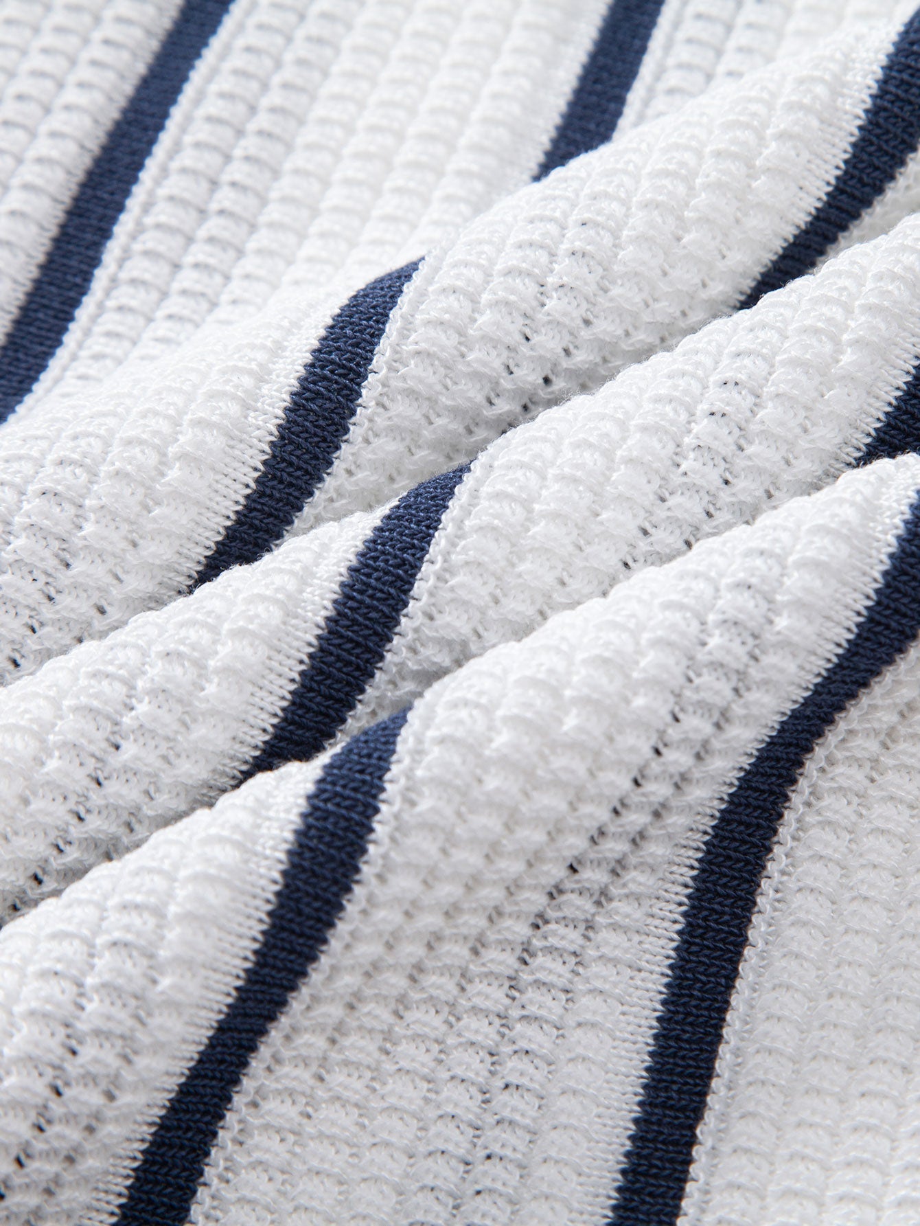 Migliora il tuo look quotidiano con questa camicia a righe lavorata a maglia, un perfetto mix di fascino vintage e comfort moderno. Le righe verticali e la texture a maglia traspirante aggiungono una sofisticatezza sottile al tuo guardaroba casual.