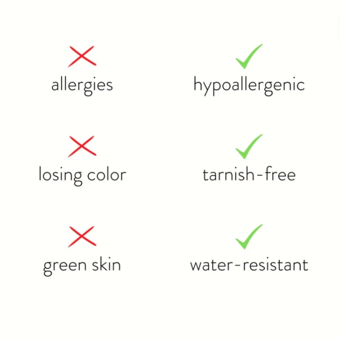 Realizzati in acciaio inossidabile impermeabile, non dovrai mai più preoccuparti di dita verdi, scolorimenti o ossidazione.